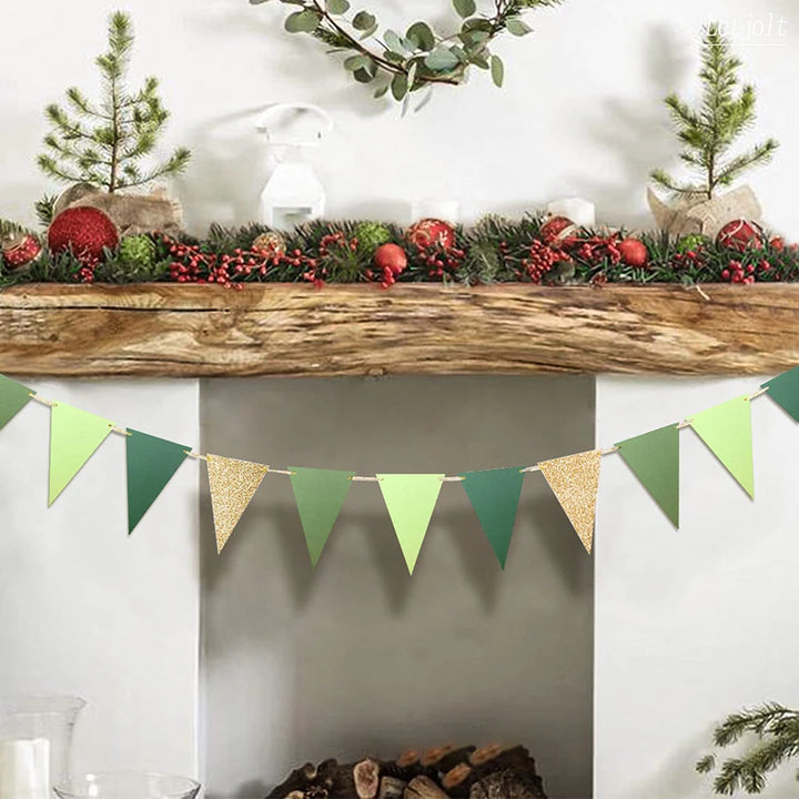 16pcs Gold & Green Triangle Flags – Party & Wedding Banner